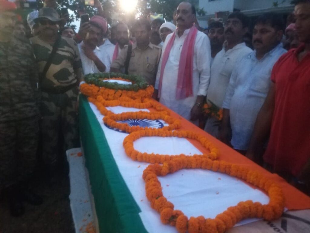 जैसे ही फौजी का शव गांव पहुचा कि पूरा उमड़ पड़ा चारे तरफ भारत माता की जय, जब तक सूरज चॉ रहेगा तब तक बिजेन्द्र तेरा नाम रहेगा के गगनभेदी नारे से पूरा गुजांयमान हो रहा था।