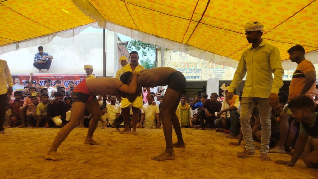 नागपंचमी पर अखाड़ा में पहलवानों ने दिखाया दम खम, दांव पेच पर ताली बजाकर उत्साह वर्धन करते रहे ग्रामीण